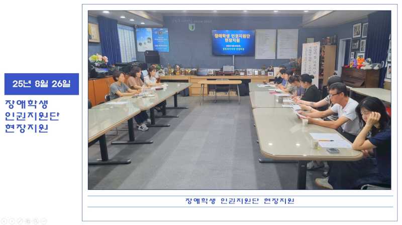 25년 8월 26일 장애학생인권지원단 현장지원 페이지 정보 작성자 운영자 댓글 0건 조회 15회 작성일 25-12-02 13:53 본문 8월 26일 장애학생인권지원단과 안양의집 생활지도원 선생님들이 모여 특수아동의 일상생활 점검과 필요지원에 대한 간담회를 진행하였습니다. 목록 다음글25년 안양의집 여름캠프(8월 27일~29일) 25.12.02 댓글목록 댓글목록 등록된 댓글이 없습니다.