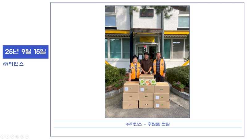 25년 9월 15일 (주)아인스 후원품 전달 페이지 정보 작성자 운영자 댓글 0건 조회 2회 작성일 26-01-31 10:57 본문 (주) 아인스에서 유기농쌀떡/떡볶이떡 후원해 주셨습니다. 감사합니다. 목록 이전글25년 9월 16일 안양시청 공직자부인회 후원품 전달 26.01.31 다음글25년 8월 26일 장애학생인권지원단 현장지원, 8월 일정공지 25.12.02 댓글목록 댓글목록 등록된 댓글이 없습니다.